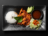 Křehká smažená kuřecí prsa v jemné strouhance, přelitá teriyaki omáčkou, servírovaná se sezónní zeleninou a jasmínovou rýží.